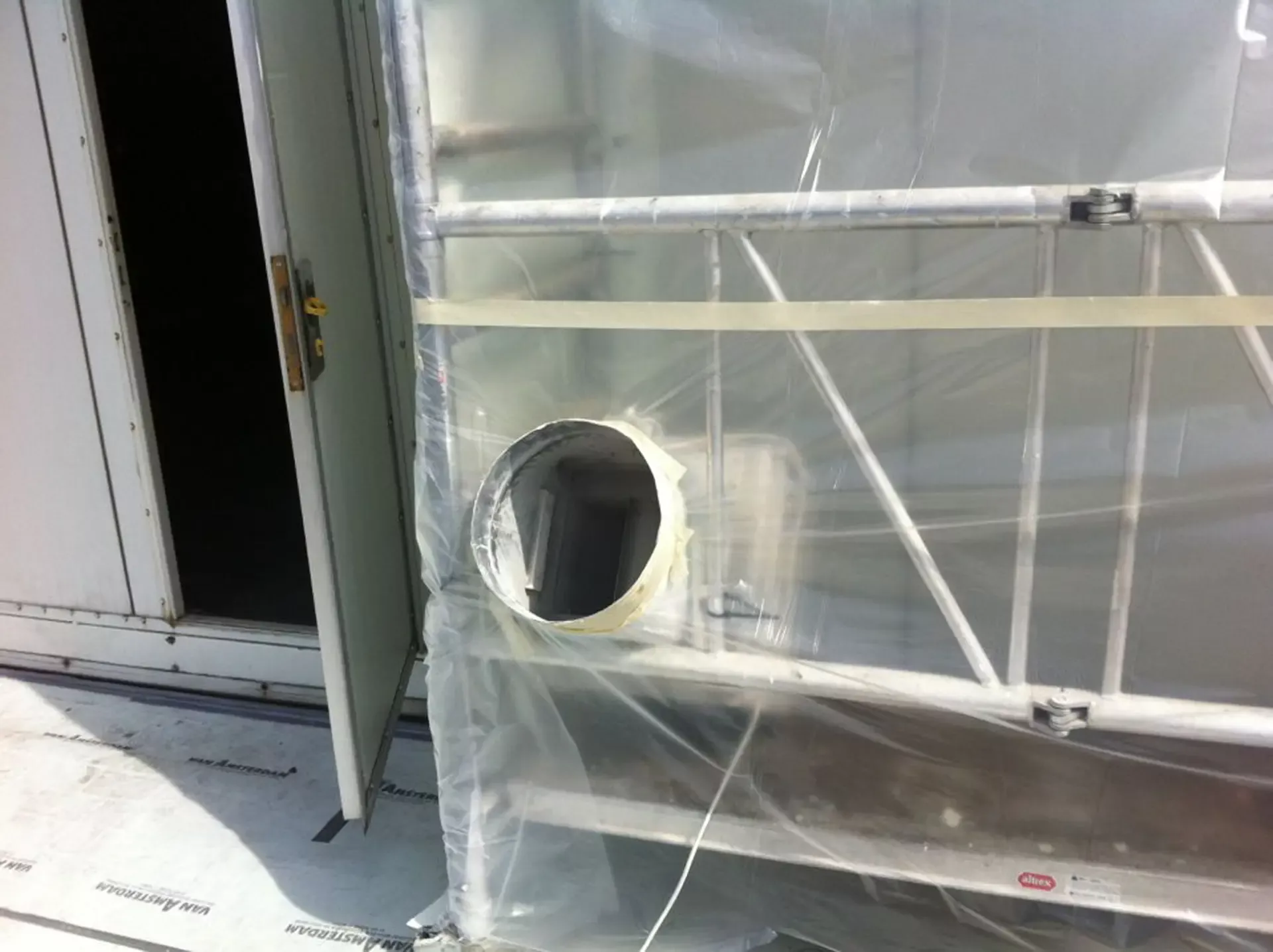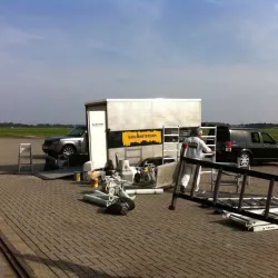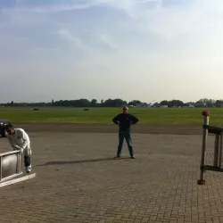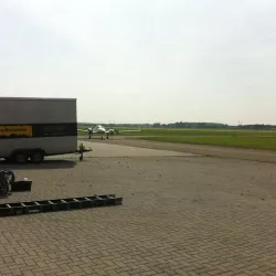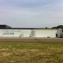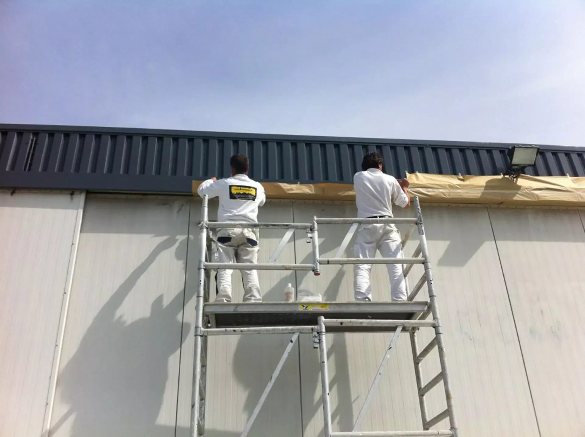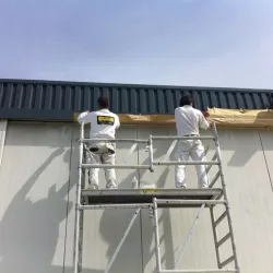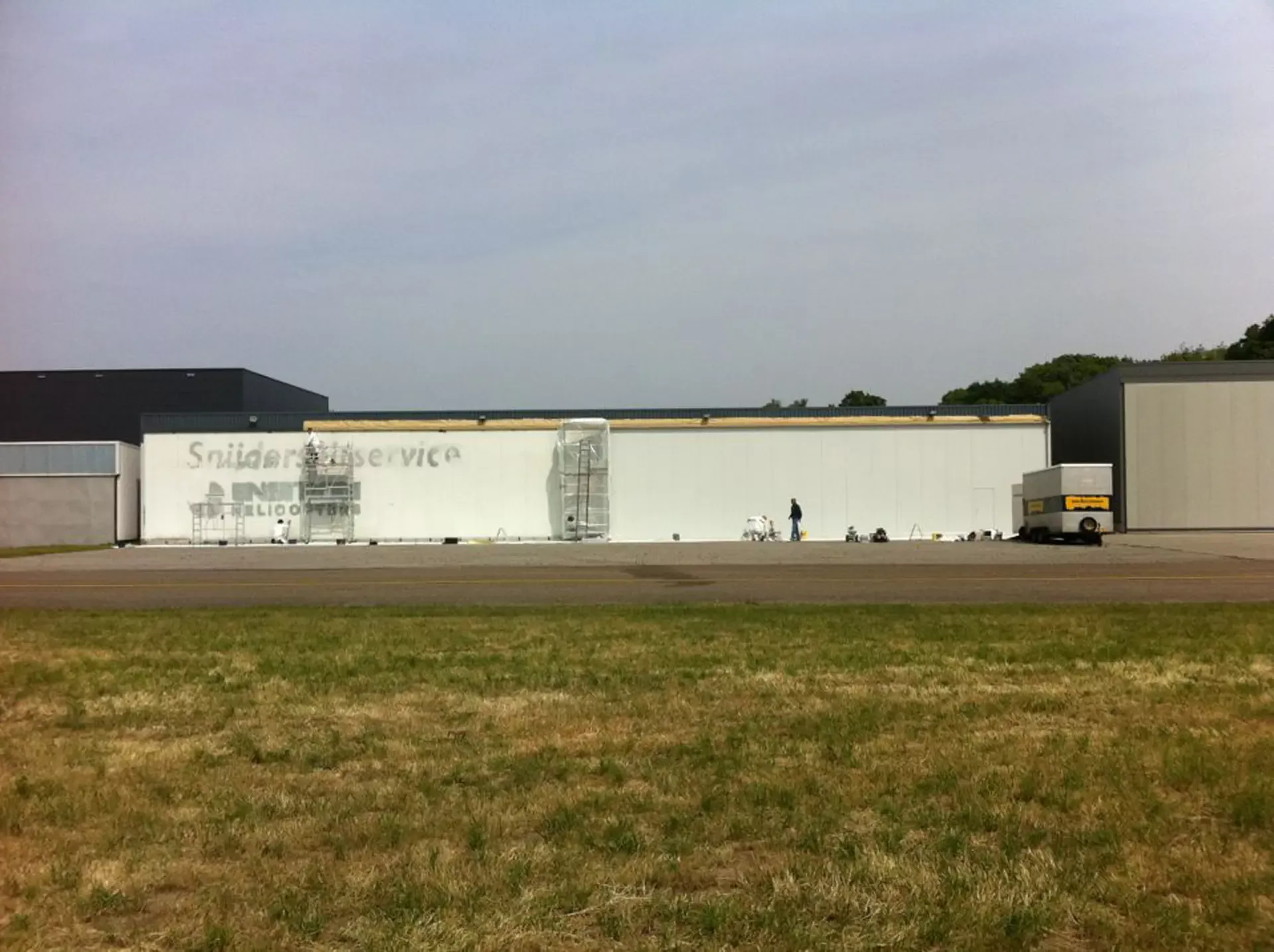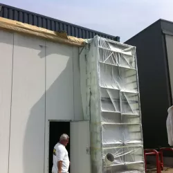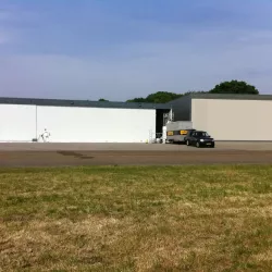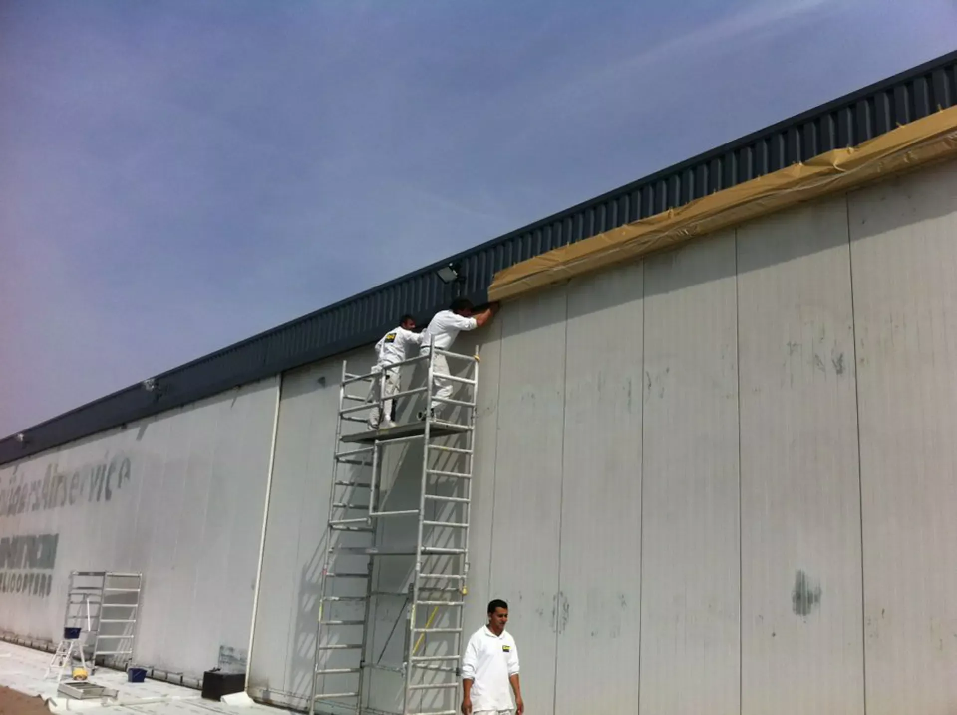 In België kregen we de bijzondere opdracht om de privéhangar van een verzamelaar van historische vliegtuigen te spuiten. De grootste uitdaging hierbij was het voorkomen van verfnevel op de onschatbare vliegtuigen. Met behulp van ons standaard afzuigsysteem hebben we rondom de steiger een vacuümunit gecreëerd, waardoor we veilig konden werken zonder risico op schade. De 40 meter lange deuren zijn vervolgens behandeld met een roestwerende verf, die garant staat voor minstens 10 jaar onderhoudsvrij gebruik.
