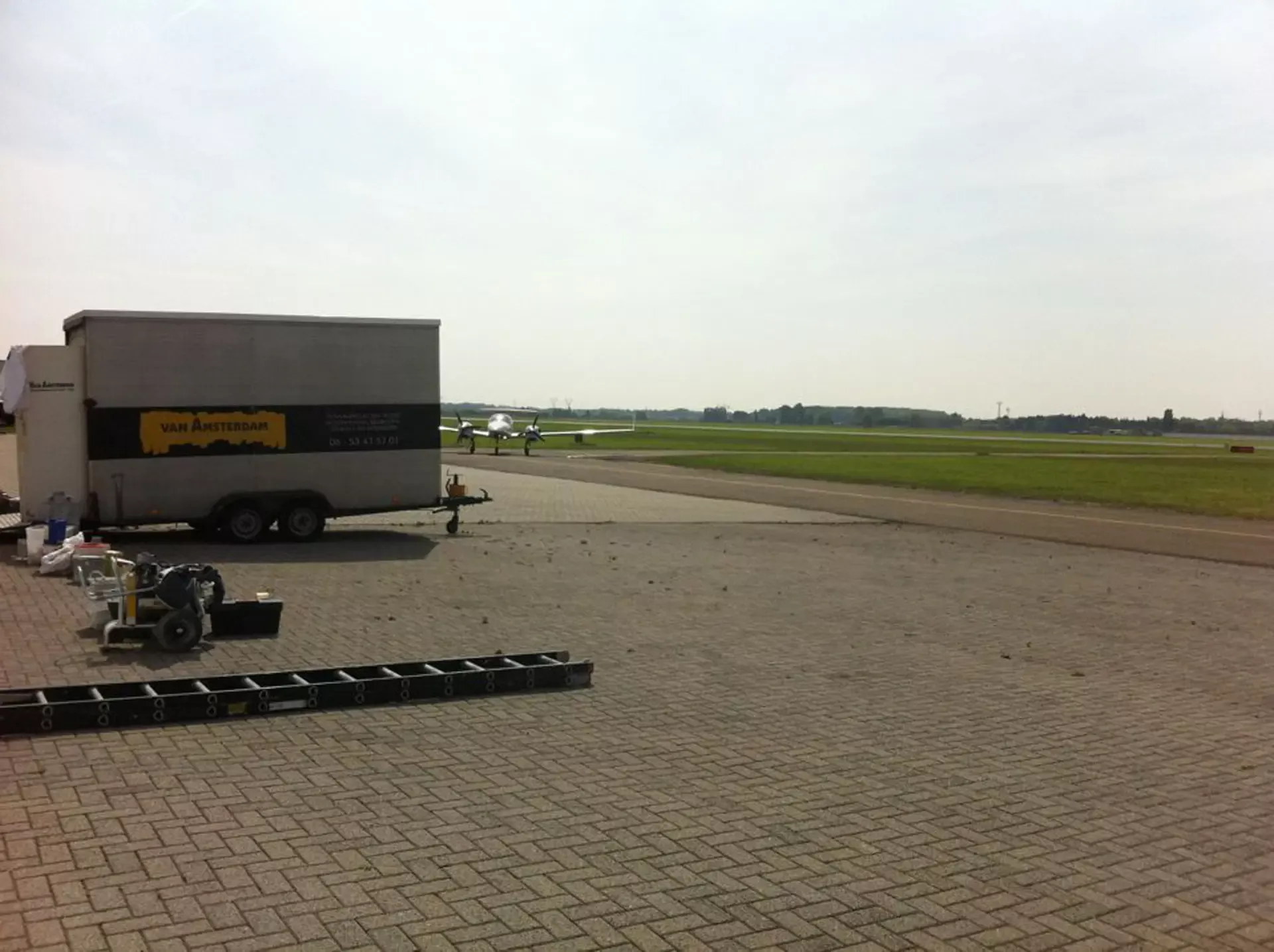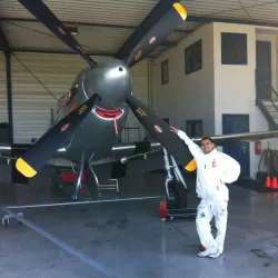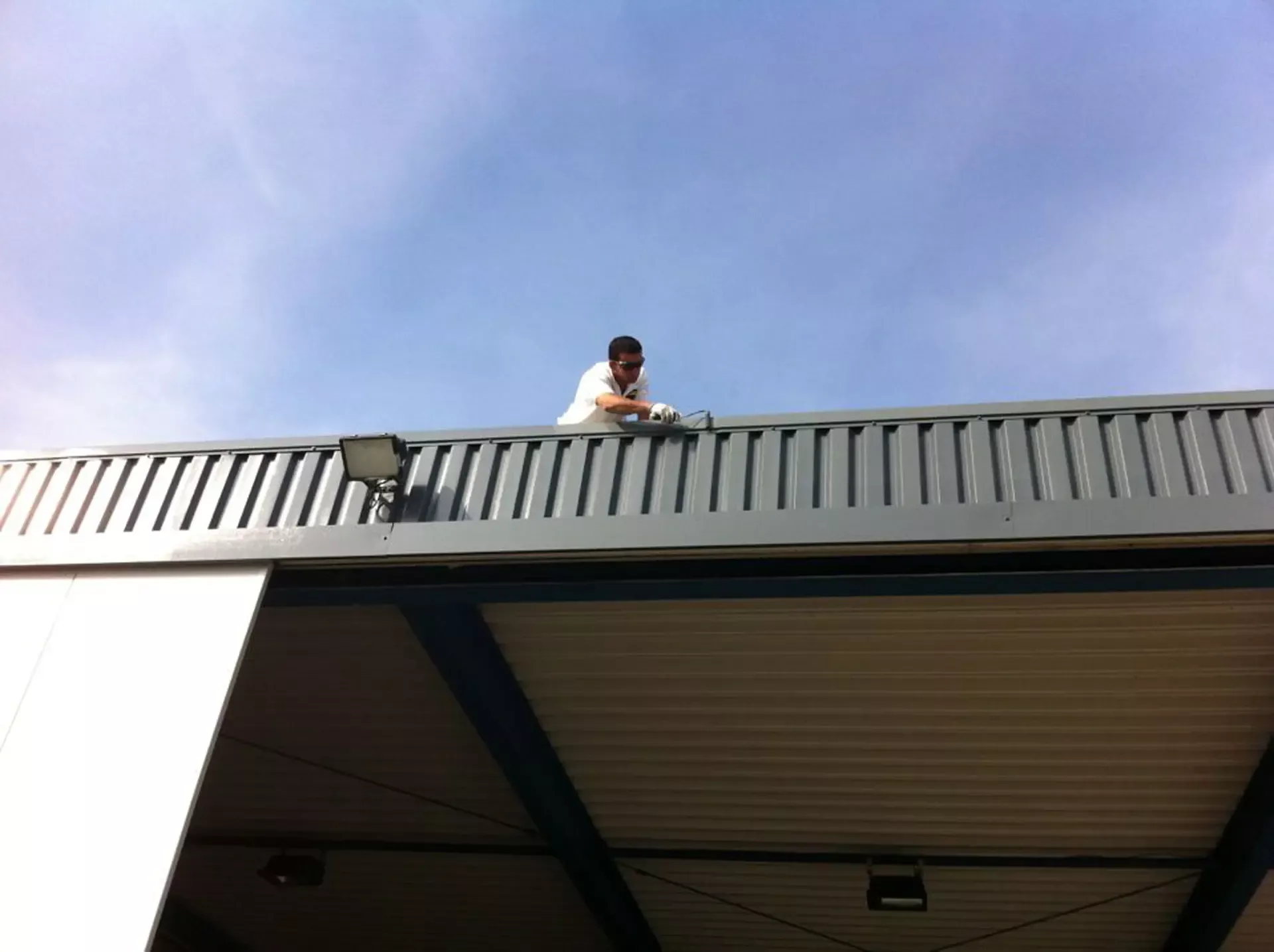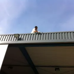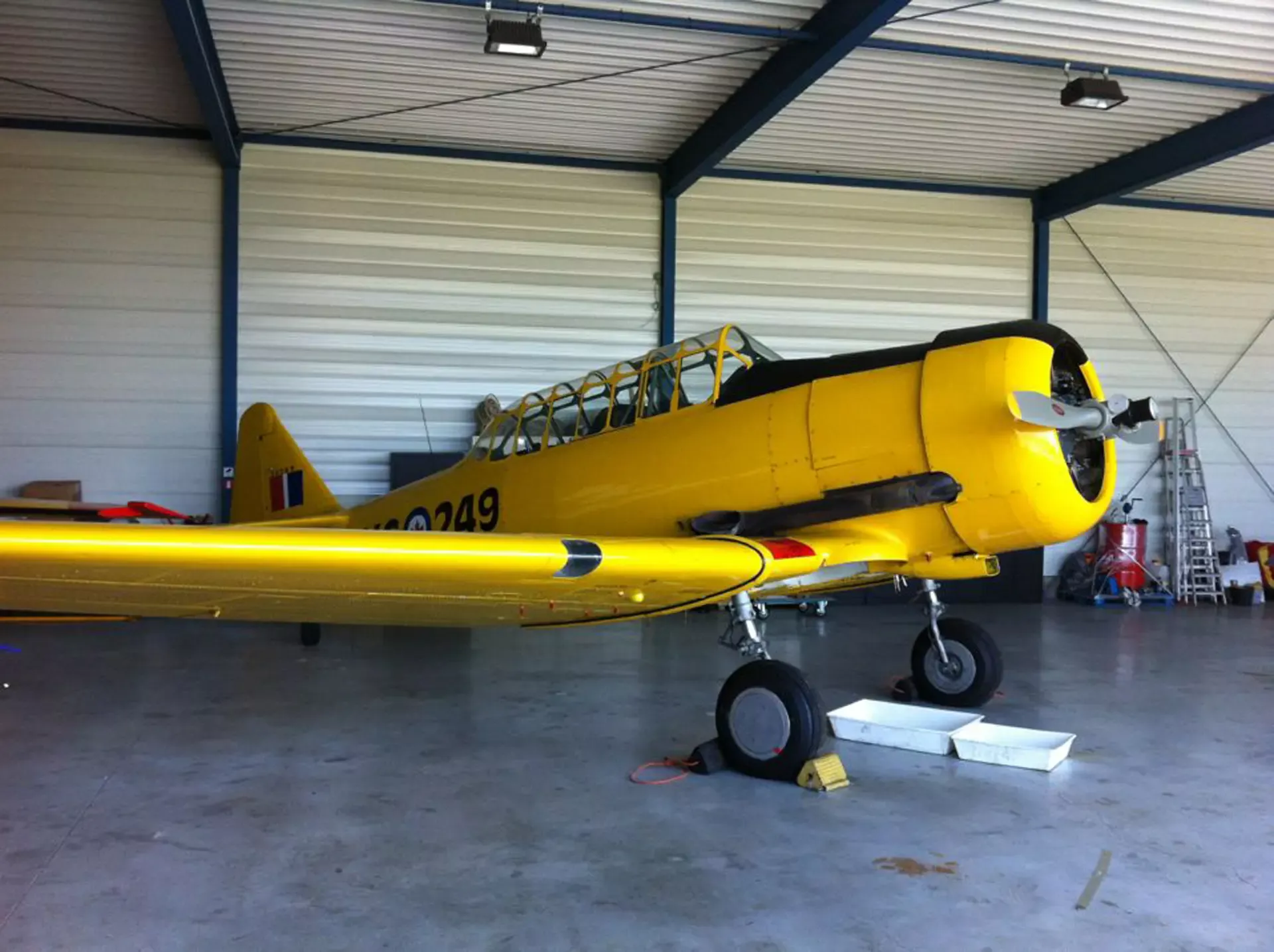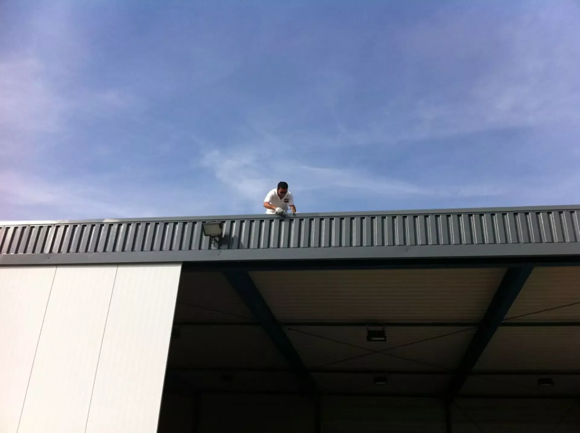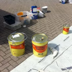 In België kregen we de bijzondere opdracht om de privéhangar van een verzamelaar van historische vliegtuigen te spuiten. De grootste uitdaging hierbij was het voorkomen van verfnevel op de onschatbare vliegtuigen. Met behulp van ons standaard afzuigsysteem hebben we rondom de steiger een vacuümunit gecreëerd, waardoor we veilig konden werken zonder risico op schade. De 40 meter lange deuren zijn vervolgens behandeld met een roestwerende verf, die garant staat voor minstens 10 jaar onderhoudsvrij gebruik.